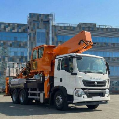 Автовышка позволяет выполнять работы на высоте до 45 метров. Данная установка - промышленный, очень маневренный подъемный механизм, предназначенный для выполнения широкого спектра работ. Преимущество её в том, что четырех-секционная телескопическая стрела позволяет точно и аккуратно производить работы по краям зданий и сооружений.